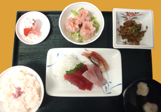 目で見て、舌で味わい、心で楽しんでいただける食事提供をします。